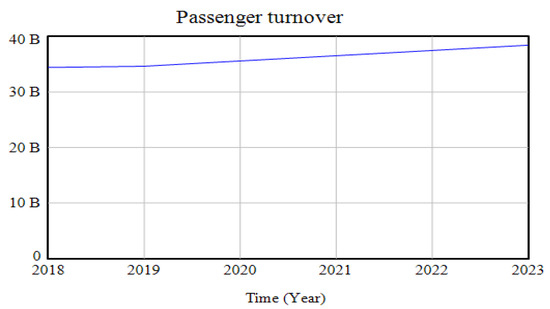 It can be seen from Table 5 and Figure 9 that, in 2020, due to the impact of COVID-19, passenger transport demand decreased, and passenger turnover declined sharply in 2020. After 2020, with the decrease in the severity of COVID-19, passenger turnover showed an upward trend, and it is basically the same as that in 2019 around 2022.
