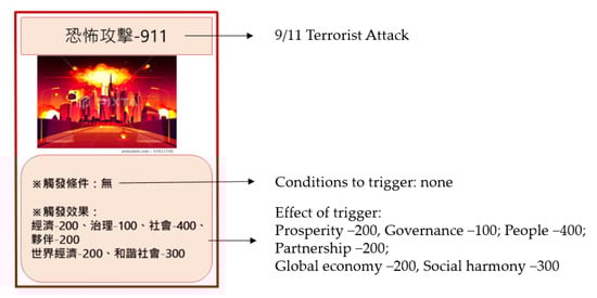 Diplomacy cards (Figure 3 presents a diplomacy card representing the occurrence of the 9/11 terrorist attack.).