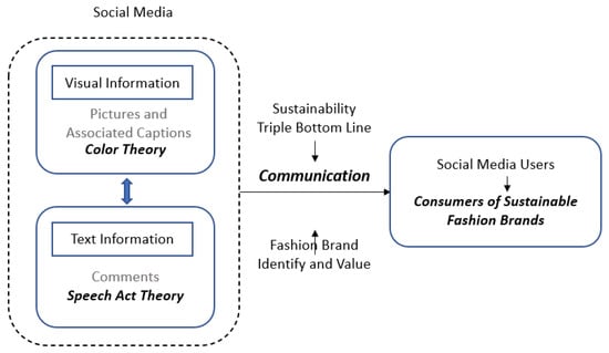 Figure 1 summarizes the information flow schema in social media regarding fashion sustainability communications. Fashion brands utilize both visual and textual information to convey their identities and values to consumers. Such information conveys the sustainability goals of fashion brands to social media users.