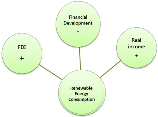 In summary, there are several empirical studies that have explored the influence of financial development on energy consumption using different estimate methods. These studies affirm the significant role of financial development in renewable energy. However, the influence of financial development on renewable energy consumption (REC) has not been studied in the case of the UAE. For this purpose, the long- and short-run interactions among economic growth, FDI, financial development, and renewable energy consumption are explored by applying the new technique of bootstrap autoregressive distributed lag, along with Granger causality analysis, in the context of the UAE for the period from 1989–2019. To the best of our knowledge, no empirical research has evaluated the impact of financial development on the UAE’s renewable energy consumption.