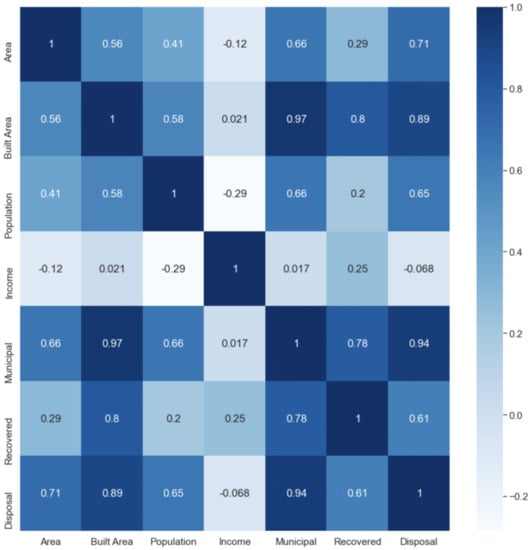 The correlations between different waste types are shown in