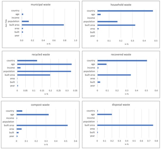 Figure 3, some of the socio-economic features correlate very strongly with waste production. In particular, built area seems to have a high impact on all waste types. In addition, population size has a rather strong impact on the waste production. On the other hand, income does not seem to have much influence on the waste numbers.