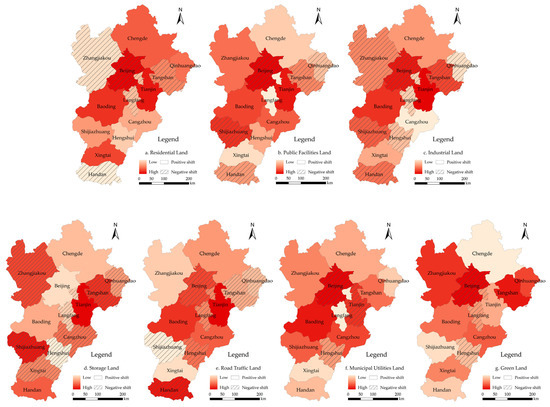 - Zhang, H.Y.; Liu, W.D.; Shi, Q.Y. Research on regional structural changes and spatial distribution of construction land based on shift-share analysis. China Land Sci. 2010, 24, 63–68. [Google Scholar] [CrossRef]
