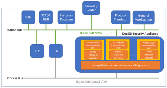 - Yang, D.; Mashima, D.; Lin, W.; Zhou, J. DecIED: Scalable k-anonymous deception for iec61850-compliant smart grid systems. In Proceedings of the 6th ACM on Cyber-Physical System Security Workshop, Taipei, Taiwan, 6 October 2020; pp. 54–65. [Google Scholar]