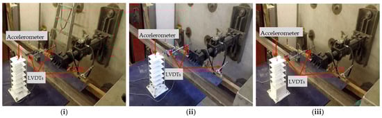 LVDTs and Accelerometer installation in the fixed case for three scaled models (i) S7 model (ii) S7+1b model (iii) S7+2b model.