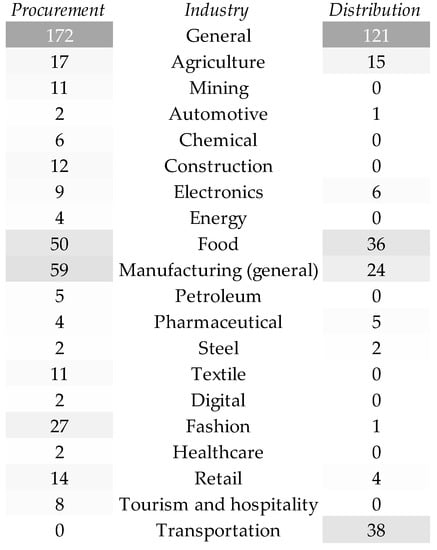 - The industry of belongingness of the actors within the SC, since from the analysis of the literature it is evident that there are different opportunities within different industries;