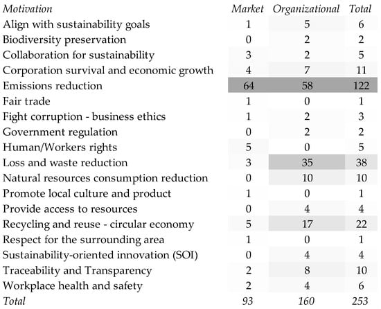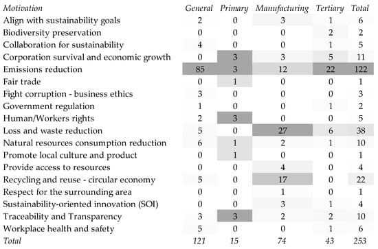 | Attract investors Brand reputation Competitive advantage Customer satisfaction Product/service quality/value/differentiation Revenues | Costs reduction Efficiency and productivity Employee engagement Energy efficiency Flexibility Information management Innovation, knowledge, and technology management Supply chain relationships management Time reduction |