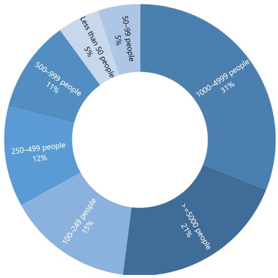 From the data, it was evident that large enterprises (more than 250 employees) were overrepresented, consisting of 75% of all enterprises surveyed (Figure 1). This is in agreement with the literature, which also indicates that large businesses the greatest RPA potential. This is a result of the volume of these entities and the large number of types of processes being implemented [].
