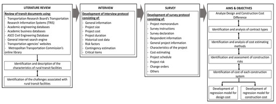 Accurate cost estimating is one of the main challenges associated with rural transportation facility projects [39]. Furthermore, the estimation of design and construction costs for transportation facilities in rural areas have rarely been studied. Therefore, the ultimate aim of this study was to provide a baseline estimate for the design and construction costs, based on the size of the rural transit facilities during the early stages of projects. In addition, multiple objectives were formulated to support the literature: (1) analyze the types of design and construction contracts, (2) investigate the cost estimating methods used in the design and construction phases, (3) assess the cost of each construction system, (4) review construction risk factors, and (5) generate statistical models to facilitate the estimation of design and construction costs. This study will provide an important resource for establishing baseline estimates for the design and construction costs of rural projects and will assist DOTs in minimizing cost overruns.