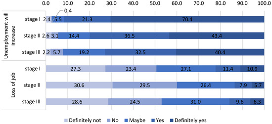 The respondents’ perceptions of the increase in unemployment and job loss (%). Source: Authors’ own elaboration based on [44].