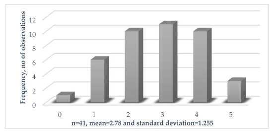 Reflecting a discrete measure on the scale, a value of LC = ‘0’ indicates that there is no challenge in deploying FMEA, and a value of LC = ‘5’ indicates that deploying FMEA is highly challenging. As shown in the histogram presented in Figure 1, the LC values observed in the investigated sample appear to be approximately normally distributed.