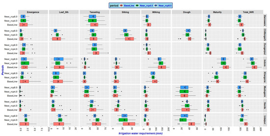 2.5. Impact of Projected Climate on Phenology, Crop and Irrigation Water Requirement