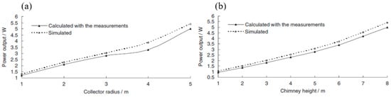 36] developed a theoretical model and analyzed the effect of the change in the Manzanares prototype’s height on the system. In experimental measurements, they claimed that at 1040 W/m