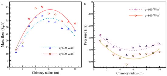 2 radiation intensity. Although the radiation intensity is almost the same for both measurements, doubling the chimney’s diameter increases the airflow rate in the chimney by approximately 44.23%. Larbi et al. [