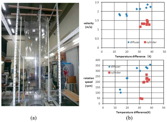 11] conducted an experimental design in a laboratory environment. They claimed that the divergent flue air velocity would be 50% higher than the cylindrical chimney design under the same conditions, and the rotation speed would likewise be 44.4% higher. Ohya et al. [