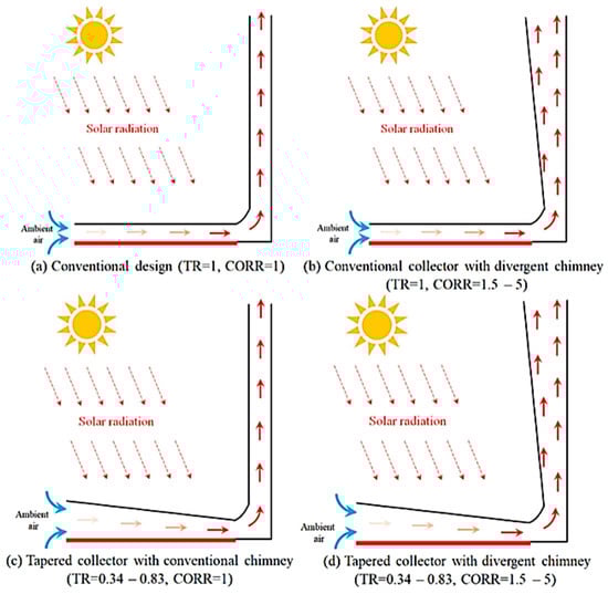96] examined the effect of divergent and convergent chimney design on the system according to a cylindrical chimney design using the Finite Difference Technique. They compared the hydrothermal efficiencies for all four seasons, and they claimed that the convergent chimney’s hydrothermal efficiency was two times that of the other designs.