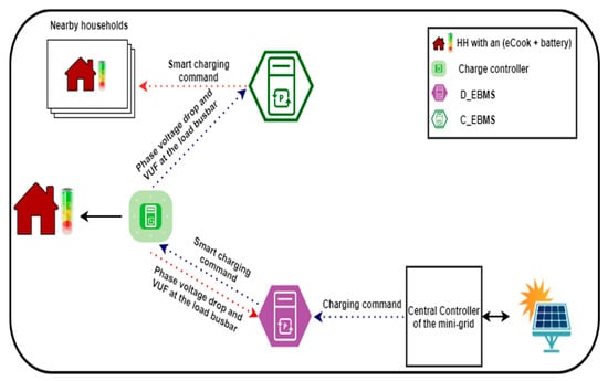 The previous section presented simulation studies conducted to appraise the feasibility of utilizing the charging rate of eCook batteries as a mean to manage the network constraints when eCook demand increases on a mini-grid. However, this section considers how this model can be implemented in a smart eCook battery management system (EBMS), to maintain the system within its constraints, and to adapt to both cloudy and sunny days with the objective of maintaining an acceptable standard and quality of eCook charging service.