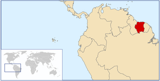 - Pan American Health Organization (PAHO). Health in the Americas, Country Volume Suriname, 2012 ed.; Pan American Health Organization: Washington, DC, USA, 2012. [Google Scholar]