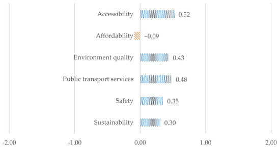 The survey asked participants to what extent they agreed CAEVs would improve different aspects of transport serving rural communities. Scores were applied to each response (2 for strongly agree, 1 for agree, 0 for neither agree nor disagree, −1 for disagree and −2 for strongly disagree). The average scores for each aspect are shown in Figure 2.