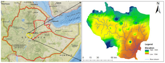 Study area location in upper Awash River basin of the central rift valley of Ethiopia.