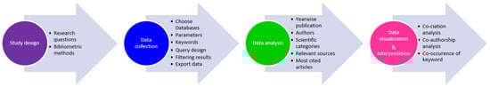 Regarding the construction and visualization of the bibliometric maps, the analysis tool we used is represented by VOSviewer, which was developed in 2009 by van Eck and Waltman []. Unlike other bibliometric software tools, VOSviewer attaches great importance to large bibliometric maps, which are created in a clear and easy to manage and use format. The aforementioned functional advantages, as well as its distribution in the open-source system, make VOSviewer one of the most frequently used software for bibliometric analyses [].