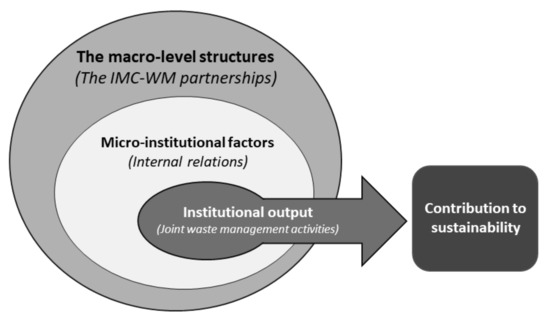As macro-level structures, the various IMC-WM partnership types provide the setting for local governments to engage with each other. Within these settings, we see the micro-institutional factors manifest as the internal relations between the member councils via their delegated municipal policy actors. Finally, the institutional outputs are seen to emerge in the form of joint waste management activities, and these activities can be seen to contribute (in varying capacities) to Australia’s journey toward sustainable waste management.