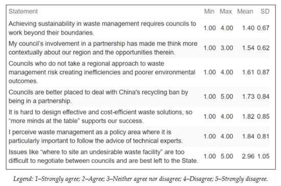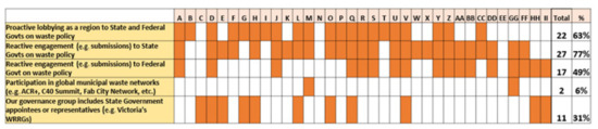 Notably, this literature review has highlighted a serious deficit of scholarly investigation into Australia’s experience with regional partnerships for waste management. This is despite previous surveys [7,8,9] identifying that waste management is the area most frequently subject to regional cooperation by Australian councils.