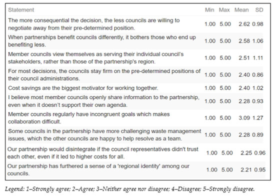Dollery, Grant, and Crase [57] argue that researchers and governments have failed to recognise how important social capital is to the sustainability of IMC partnerships. Instead, most attempts to understand and improve these partnerships have “relied almost entirely on the economics of the problem, to the exclusion of other factors” [57]. As per some studies [30,60], research findings frequently show signs that scale economies and cost savings alone do not result in successful partnerships.