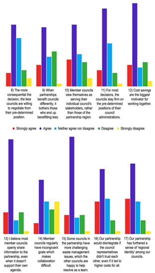 Interestingly, the researchers explored potential solutions to these issues but concluded that when a lack of goodwill exists and persists in an IMC arrangement, it becomes virtually impossible to prevent the collaboration from being undermined [55]. For example, member councils always have some capacity to withhold important information from the other members of the network. The researchers give the example that a pro-recycling council has the ability to not report information that demonstrates the costly nature of recovering certain recycling streams, while a fiscally conservative council may be less likely to report positive feedback from residents about a program that is perceived as too costly [55].