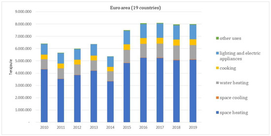 Disaggregated final energy consumption in EU19 households (Terajoule). Source: [40].