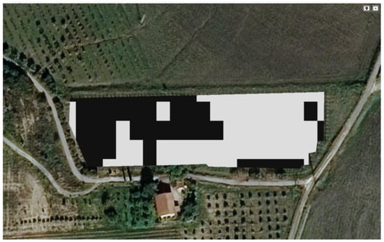 Spatially variable rate fertilisation map, including two management zones, for Nero d’Avola plot: the cells having higher NDVI and NDWI values are in black, while the cells having lower values of these indexes are in white.