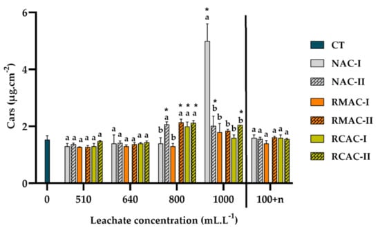 | 1000 | B | 1.5 ± 0.1 b | B | 3.8 ± 0.5 a | C | 3.9 ± 0.4 a | B | 3.2 ± 0.7 a | B | 3.8 ± 0.1 a | C | 2.8 ± 0.2 ab |