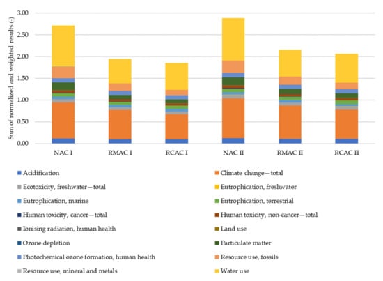 | Resource use, mineral and metals (kg Sb eq.) | 3.05 × 10−5 | 6.43 × 10−5 | 1.81 × 10−4 | 3.30 × 10−5 | 5.68 × 10−5 | 1.67 × 10−4 |