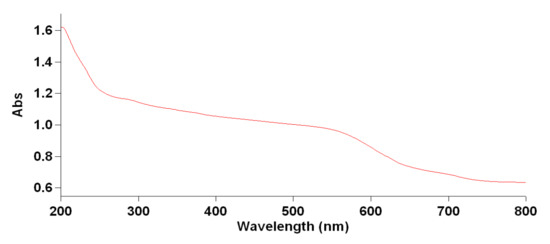 As shown in Figure 3, a good distinct absorption peak was detected in the UV region between 190 and 370 nm in the spectrum of synthesized nano-Se, displaying its nano-nature. The absorption spectrum remained constant over time, indicating the stability of the particles.