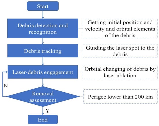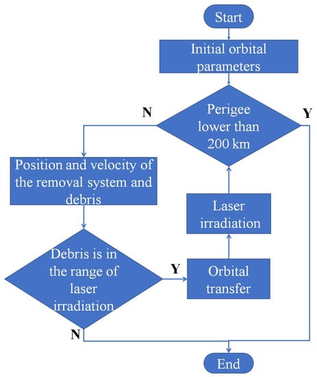13]. The perigee of space debris is reduced under the irradiation of high-energy laser and finally the space debris falls into the atmosphere to be removed.