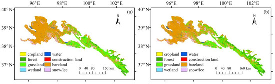 Land-use in the QLME in 2018 and 2050 ((a): 2018, (b): 2050).