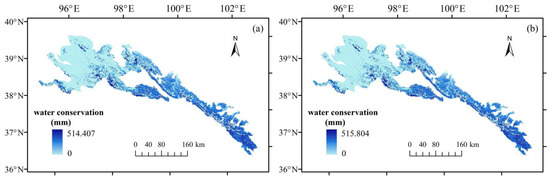 Distribution of water conservation in QLME in 2050 under different scenarios ((a): RCP4.5 scenario, (b): RCP8.5 scenario).