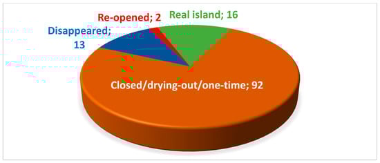 Altogether, 66 real islands existed at the same time along the observed 150 rkm-long Danube stretch about 200 years ago, i.e., before the large-scale water regulation works, while today this number is 18, including the two recently re-opened ones (Figure 3). This means that 73% of current potential Danube islands have closed branches or are within the stage of severe side-branch succession.