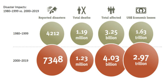 Impact of natural disasters recorded between 1980–1999 and 2000–2019 [26].