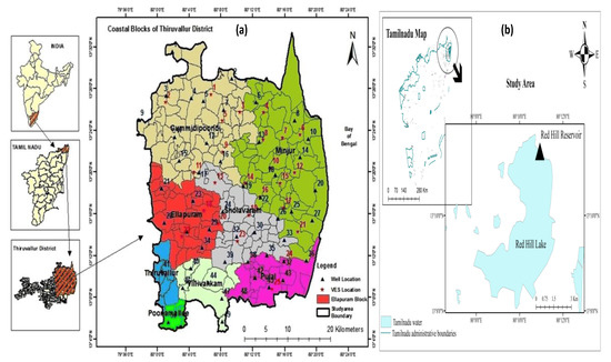 - Vinodh, S.S.K.; Babu, G.J.; Arulprakasam, B.G.V. Integrated seawater intrusion study of coastal region of Thiruvallur district, Tamil Nadu, South India. Appl. Water Sci. 2019, 9, 124. [Google Scholar] [CrossRef] [Green Version]