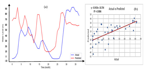 The selected models for the water level prediction in this study could be used confidently to estimate the water level in the Red Hills Reservoir. The results obtained in the present study are in validation of other previous studies that were performed for the prediction of water level in India using ANN, such as M.Y.A. Khan et al. [68], that has put the application of ANN into use for the prediction of water level for the Ramganga river, which suggests the prediction accuracy of 93.42%. Additionally, machine learning techniques, such as wavelet and support vector machine implementation has also been performed by Yadav et al. [69] to predict the daily water level of Loktak lake (India). The prediction accuracy for accumulated data in this study was found to be higher than the original data series based on the performance evaluation using RMSE, because it accounted for the past data for analysis that increased the prediction efficiency. Moreover, a hybrid system of ANN and machine learning was used to forecast the water level in Jhelum river at Sangam station of Kashmir valley in India to improve the early warning system for flood prevention. It was found that the condition of accuracy depends on previous data and forecasted values of temperature and precipitation [70].