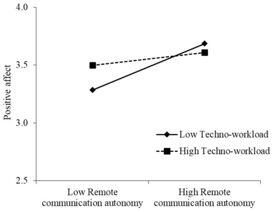 Person-level techno-workload moderates the day-level relationship between remote communication autonomy and positive affect, such that the day-level relationship is stronger when the techno-workload is low than when it is high.