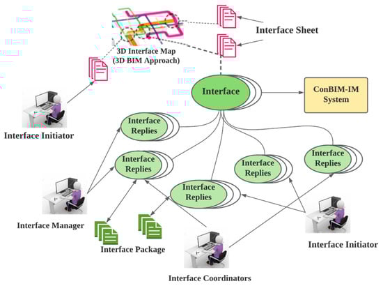 Figure 9 shows the BIM-based interfaces framework communication and management integrated with the Interface Breakdown Structure (IBS) and MBS. The process then creates an IBS and a Model Breakdown Structure (MBS) before integrating them in BIM. IBS can break IM into elements of related interfaces. Meanwhile, IBS is a hierarchical representation of interfaces, starting at higher levels, and increasing to more acceptable level interfaces. Furthermore, MBS in interface management is a deliverable-oriented breakdown of a BIM model into more minor elements for interface management. MBS is a crucial interface integrated with elements of BIM models. The CMI-related information stored in elements of the BIM model includes both CMI-related problems and solutions [81]. The CMI essential information should include the interface description, responding, or related attachments such as documents, reports, drawings, and photographs. CMI then enables communication and activates responses associated with projects, activities, people, and organizations. Identifying the connection between the information of CMI and the corresponding interfaces is crucial to the project’s management.