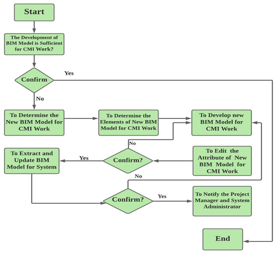 The format limitation of the standard BIM file-based model could be used to share the most recent building progress [41]. CMI was integrated into BIM to facilitate discussing, sharing, and responding to issues related to the BIM elemental interface during the construction phase [28]. CMI enables project engineers and managers to access previous records regarding BIM models for a given project. In the future, it will manage the response to interface problems, as illustrated in Figure 3. The literature focuses on CMI integration; however, it lacks a suitable platform for BIM-based CMI [42].