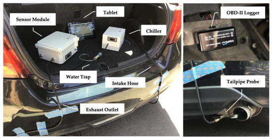 Details of the OBD-II logger and the PEMS device installed on a test vehicle.