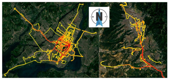 Figure 2 presents the aggregated view of GPS trajectories for experiments conducted in Montreal and Bucaramanga. Moreover, Table 1 provides descriptive information about the on-road experiments and Table 2 describes the test fleet specifications.