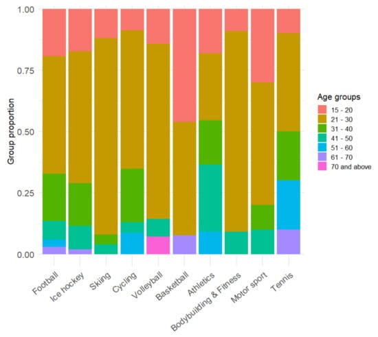 Achieving sustainability in the long run via building a membership base is only possible when organizations have well-functioning marketing aimed at gaining attention and reaching and recruiting new athletes from an early age [13,53]. It is an emphasis on this dimension of sustainability that makes it crucial to study the perceived popularity of different sports among the population depending on their age. The differences in the popularity of individual sports in different age groups [54,55,56] may be an indicator of a change in preferences in the younger generation. Therefore, another variable, age, and the differences in the popularity of sports connected to it were specifically analyzed.