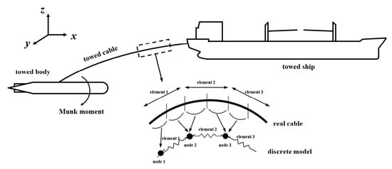 - Sun, F.J.; Zhu, Z.H.; LaRosa, M. Dynamic modeling of cable towed body using nodal position finite element method. Ocean Eng. 2011, 38, 529–540. [Google Scholar] [CrossRef]