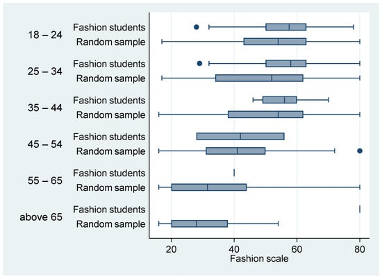A comparison of the fashion students and the random sample by age group is presented in Figure 6. Fashion students have a higher fashion interest than the random sample in all age groups.