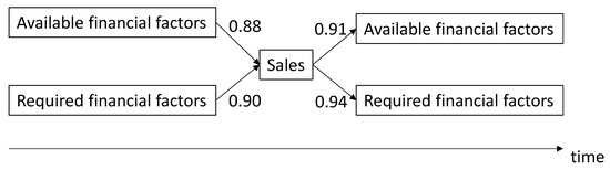 The key results are summarized in Figure 1. They suggest that there is a causal effect of the financial factors on sales as well as a causal effect of sales on financial factors. This means ethically driven divestment decreases future sales and decreasing sales influence financially driven divestment. Since the R-squared values are relatively similar for the lagged financial factors and lagged sales as well as for the available and required financial factors, we cannot assume one specific cause–effect direction dominates.